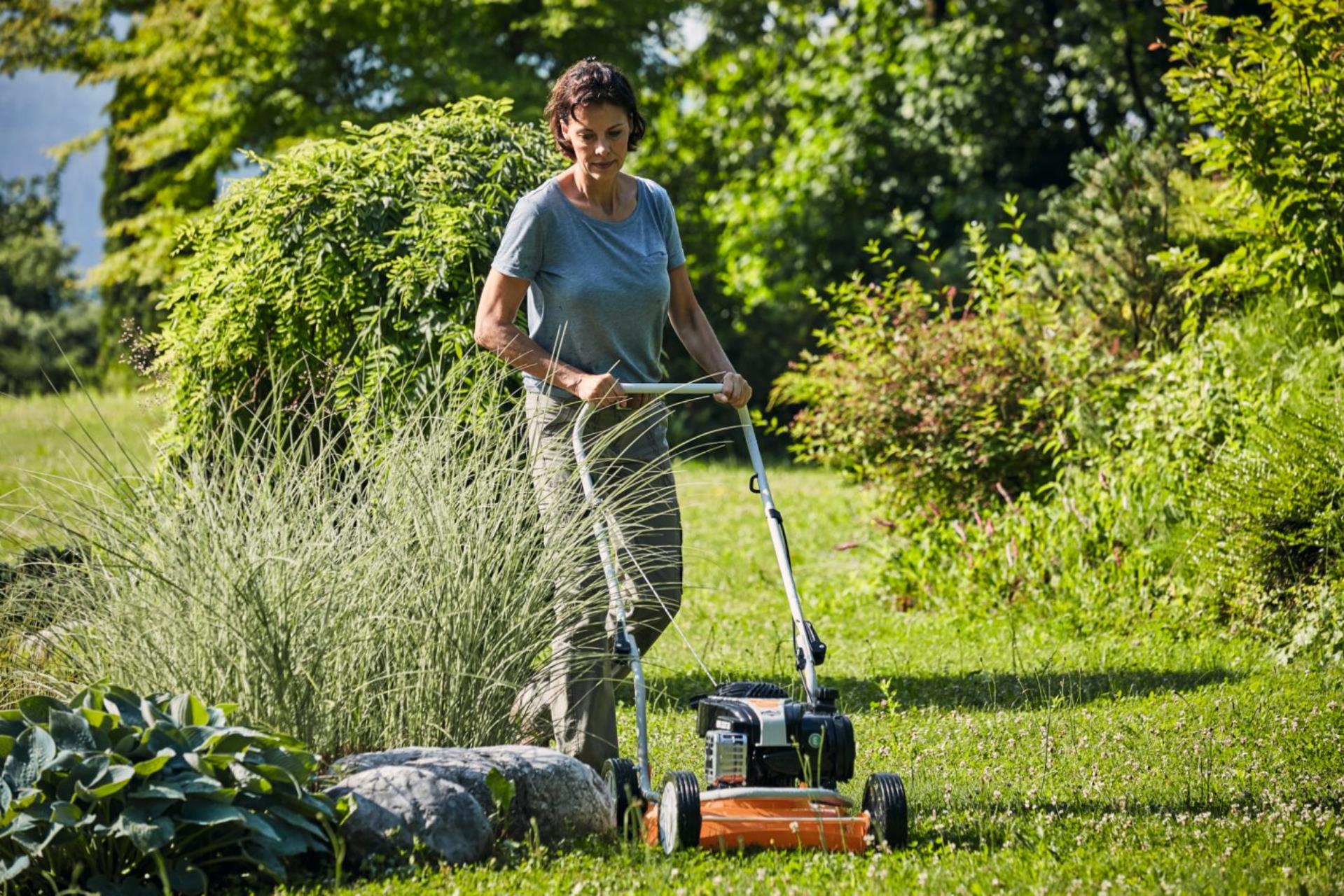 Der kraftvolle OHV-Motor des STIHL RM 2 R überzeugt durch seine konstant stabile Leistung und ermöglicht ein effektives Mulchen. Zur natürlichen und nachhaltigen Rasenpflege fällt der feine Grünschnitt bei diesem Mäher als nährstoffreicher Dünger direkt wieder in die Grasnarbe zurück. Ihre gewünschte Schnitthöhe wählen Sie mit der achsweisen Schnitthöhenverstellung in 4 Stufen von 28 mm bis 85 mm. Die Leichtstartfunktion des RM 2 R von STIHL erleichtert Ihnen bereits das Anwerfen des Motors. Die Leichtlaufräder sorgen zudem dafür, dass Sie möglichst einfach Ihre Rasenfläche pflegen können. Zum Transport und für die Lagerung klappen Sie den Holm des Mulchmähers einfach mittels Quick-Fix-Schnellspanner um.
