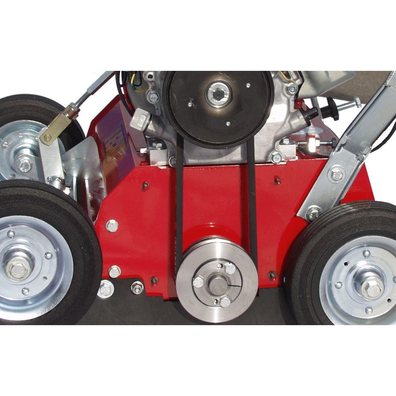 Sicherheit: Die rundum angebrachten Gummischürzen schützen den Anwender vor hochgeschleuderten Steinen und vor Staub.