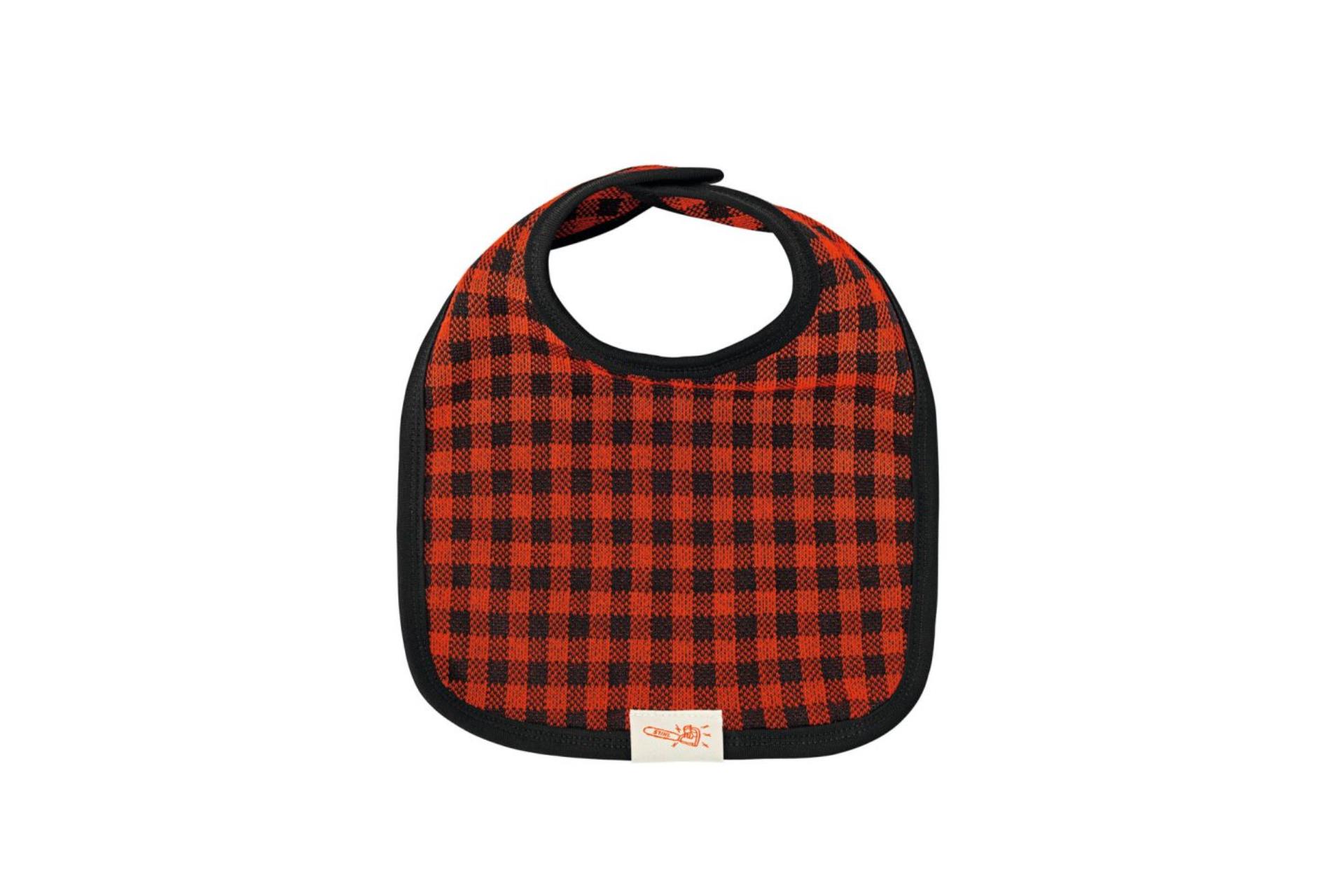 Rot/Schwarz kariertes Lätzchen mit STIHL Weblabel an der Seite. Mit einem Maß von ca. 26 x 27 cm geht beim Essen auch nichts daneben. Verstellbar mit drei Druckknöpfen.