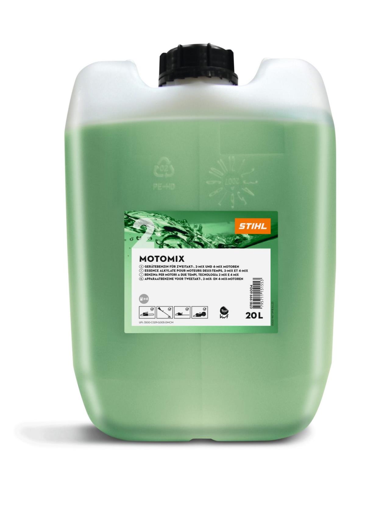 Das Kraftstoffgemisch STIHL MotoMix ist ein vorgemischter Sonderkraftstoff im Mischungsverhältnis 1:50, den Sie für alle STIHL 2-Takt-Motoren verwenden können. Es ist speziell auf die Motoren von STIHL Geräten abgestimmt und bietet dank des beigemischten Premium-Öl STIHL HP Ultra eine hervorragende Motorschmierung und hohe Sauberkeit durch eine rückstandsarme Verbrennung. Das Kraftstoffgemisch STIHL MotoMix hat beste Kaltstarteigenschaften, ermöglicht eine maximale Beschleunigung über den gesamten Drehzahlbereich und ein einwandfreies Laufverhalten bei plötzlichen Gaswechseln. Es ist besonders anwender- und motorenfreundlich, da es nur geringe Emissionen erzeugt. Das Kraftstoffgemisch kann die Lebensdauer Ihrer Motoren verlängern.