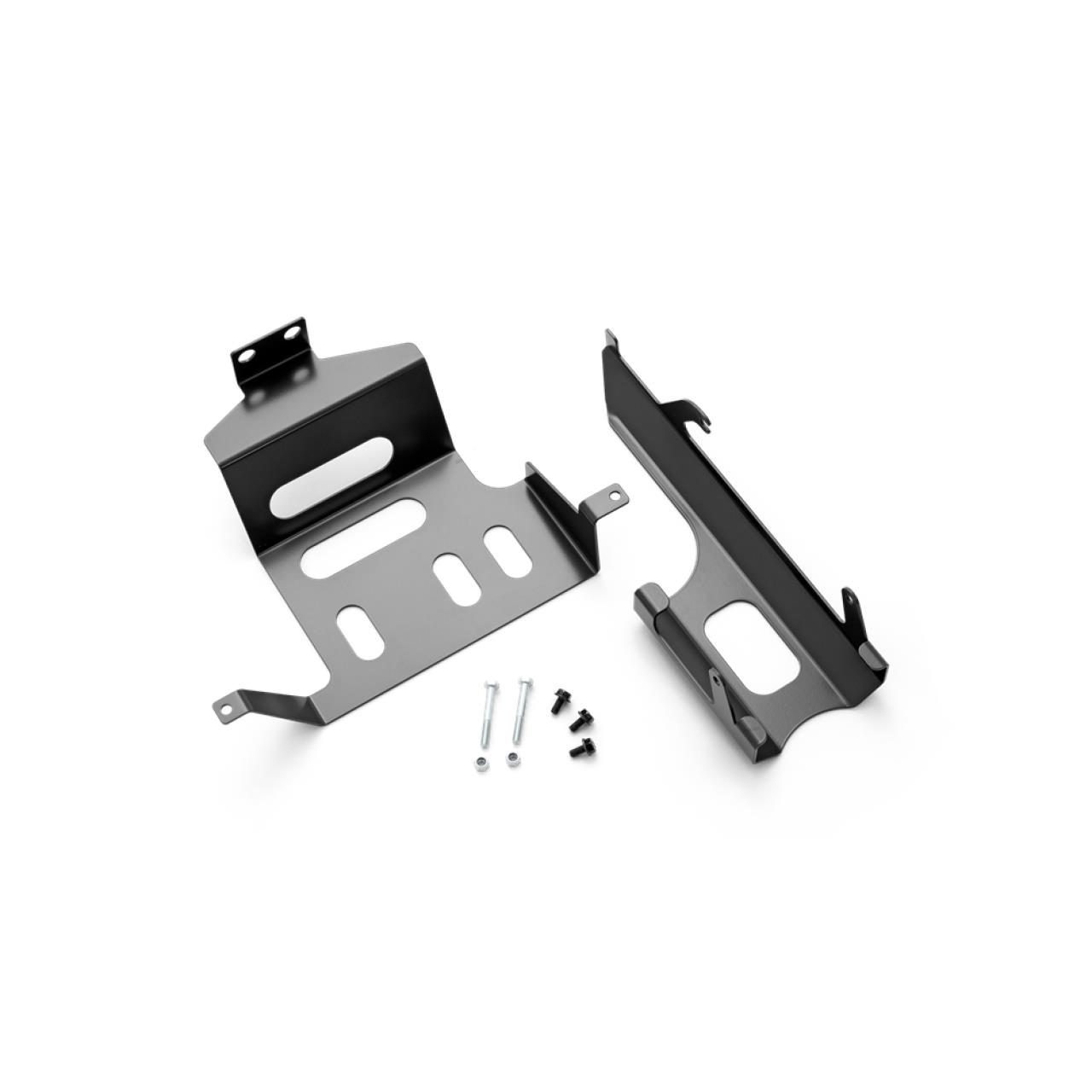 Robuste lackierte Stahlplatte zum Schutz des Getriebes, der Leitungen und Schläuche.