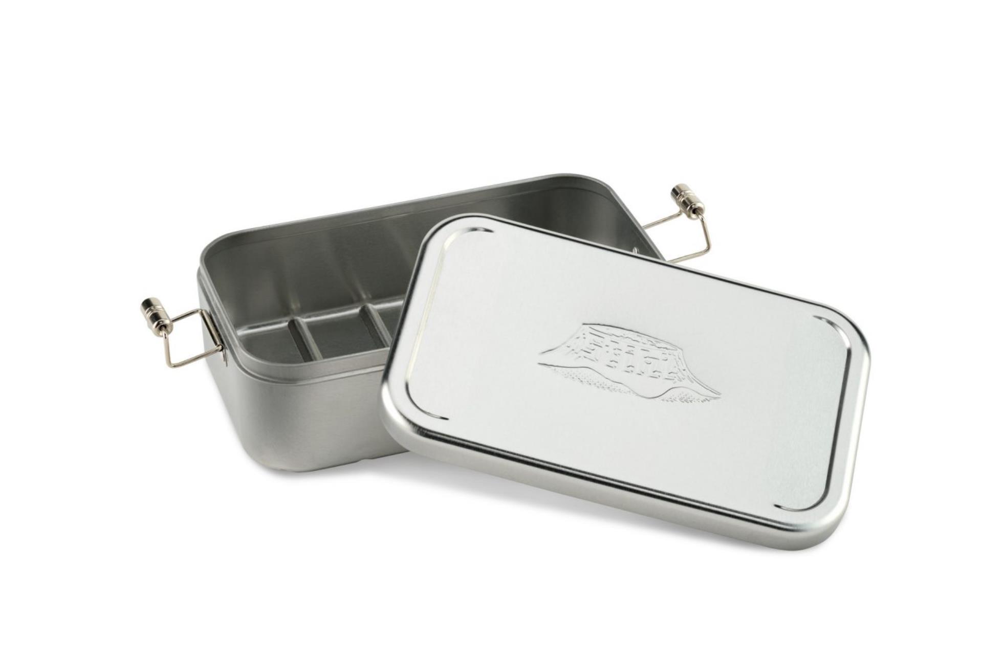 Die Vesperdose HERITAGE erinnert an längst vergangene Zeiten. Die Brotdose aus Edelstahl ist praktisch und mehr als nur ein Sammlerstück. Als praktischer Begleiter für jeden Tag bietet die sicher verschließbare Retro-Lunchbox jede Menge Platz für Brote, Obst, Snacks und Sandwiches.